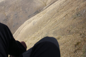 He steered the glider straight forward to the end of the valley. We were actually sailing this time, using the wind to push us forward. In a few seconds we flew like 500 meters in straight line. Once we reached the end of the valley, Steve tried again to put the glider under the wind, in search of some thermal ascendant current. As I was looking down to the bottom of the valley I saw a few abandoned cars. “Stolen and abandoned” explained Steve.