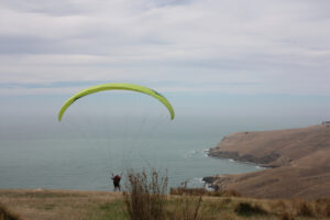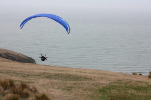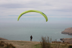 After a few “walks” on the end of the valley we finally catch a thermal. In fact we catch a few thermals and we started to lift off, but the higher we were going, the stronger the horizontal wind from the sea was becoming. We were starting to experience some strong bumping. To be honest, I quite enjoyed this. Apparently, Steve didn’t. We were like flying horizontally and then, all of a sudden, we were receiving a push from the bottom. The glider was actually stretching our shoulders up. But at the same time, these very ascensions had the tendency to switch the glider on his vertical axis. I could feel Steve fighting really hard on the controls to keep the glider steady.
