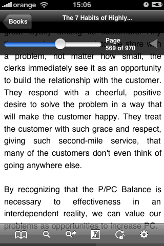 I like to read. I also like to read ebooks. So I installed this free application to be able to read what I have on my eReader.com shelf. Again, not much to say about this one, other than the fact that it works well and it keeps me thinking. Watching money is ok, but reading books is invaluable. eReader is a free application at AppStore.
