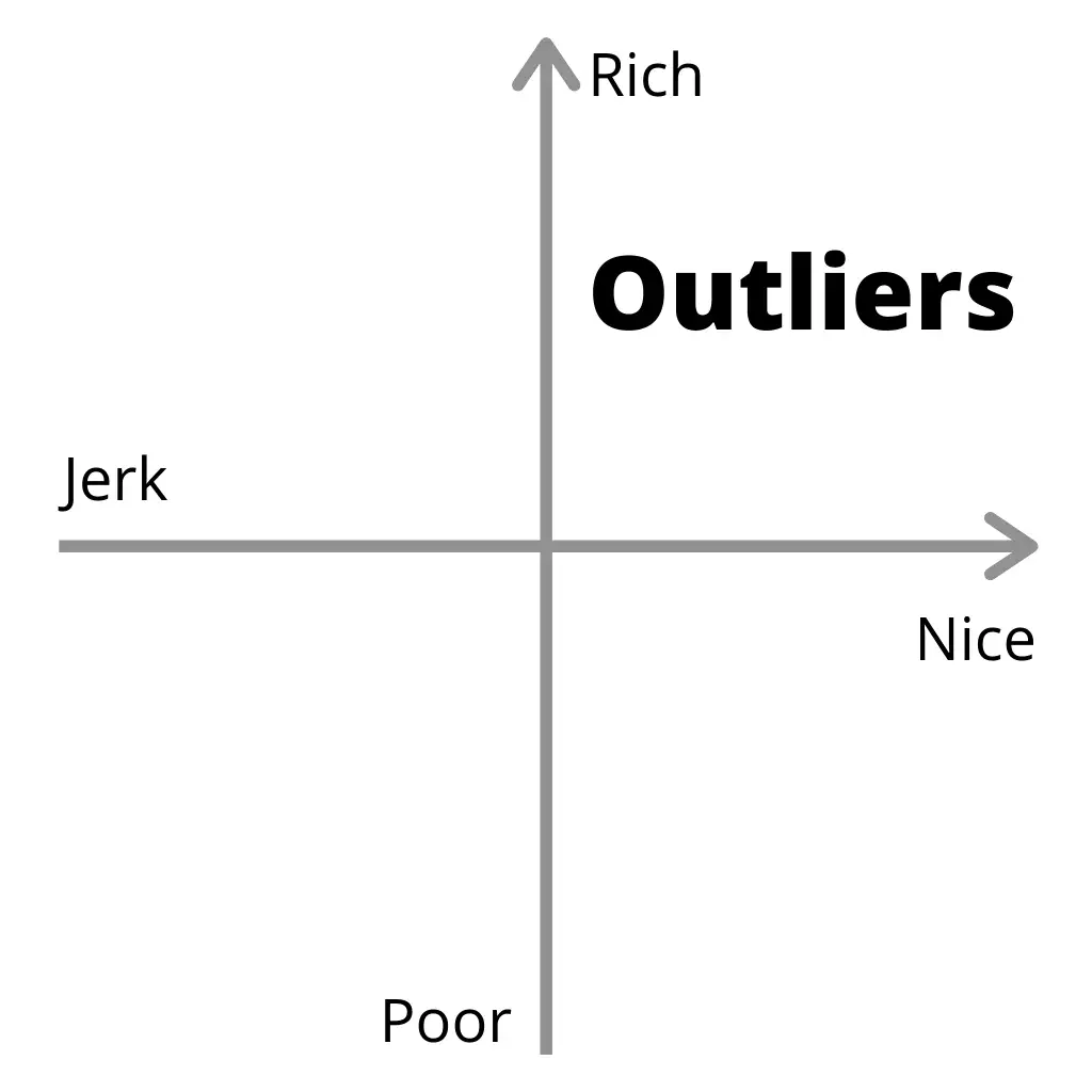 The vertical axis is about how much money somebody has. It’s basically a scale between filthy rich and dead poor. The horizontal axis is about how nice somebody can be. At its lowest, we see absolute jerks, and at its highest we see really nice persons.
